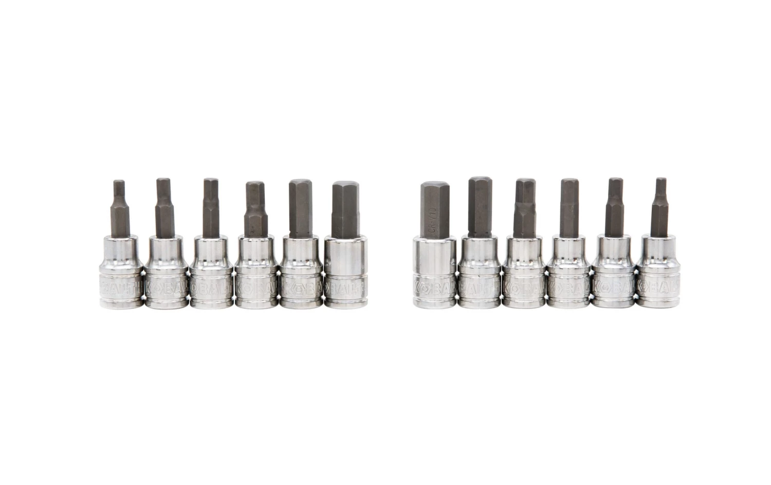 - 3/8-Inch drive, metric and SAE hex driver socket sizes include 4, 5, 6, 7, 8 and 10 mm, as well as 5/32, 3/16, 7/32, 1/4, 5/16 and 3/8-in
