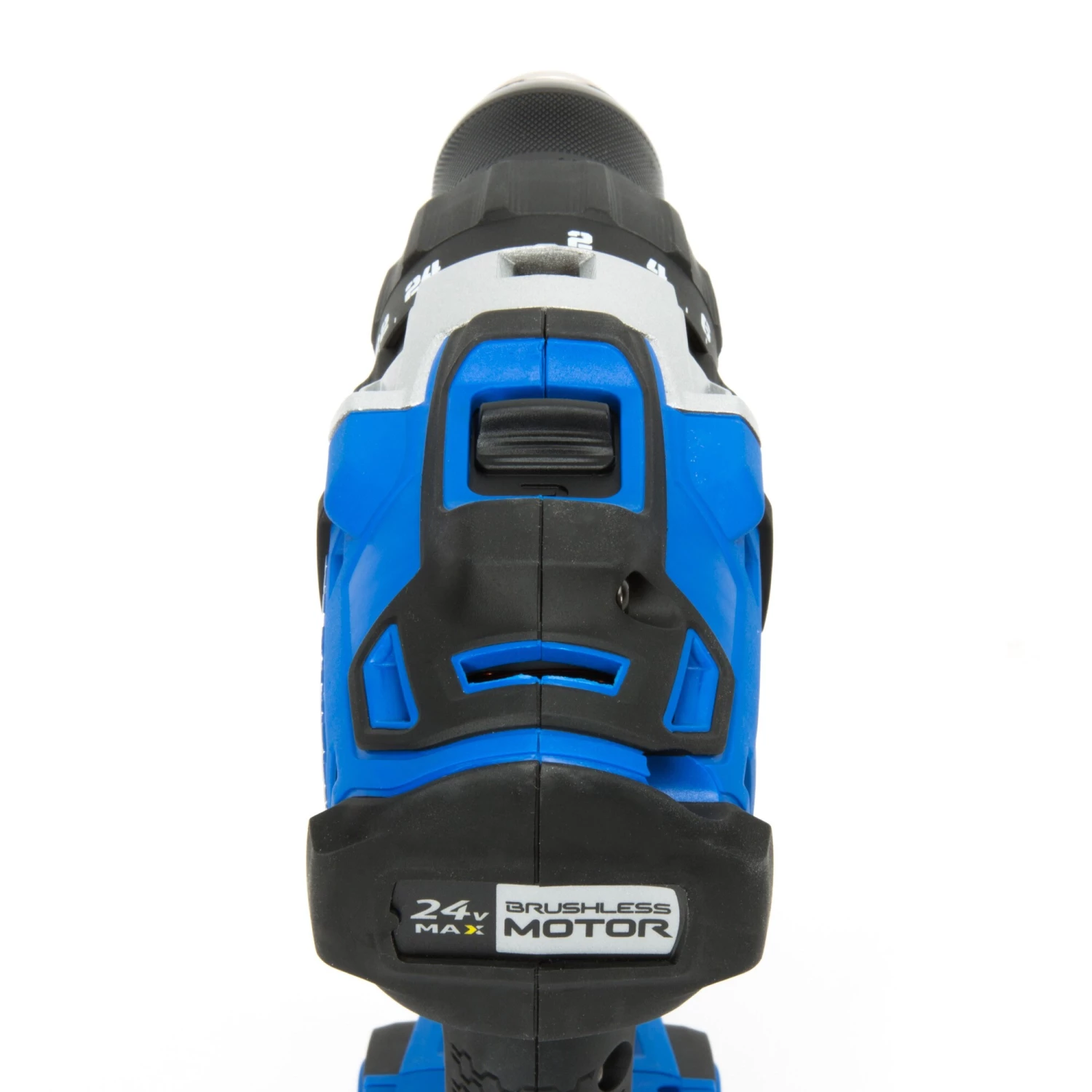 Tackle heavy duty projects in concrete and masonry with this Kobalt 1/2 inch cordless hammer drill. It’s brushless motor delivers 650 inch/pounds of torque and longer runtime. The 24-Volt Max lithium ion battery provides big power. The 2-speed gearbox and variable speed trigger make it easy to set the speed for the task at hand, and 24 clutch positions allow for more controlled drilling in a variety of materials. Designed to work with all Kobalt 24-Volt Max batteries, this Kobalt Cordless Power Drill is a must have for your toolbox.