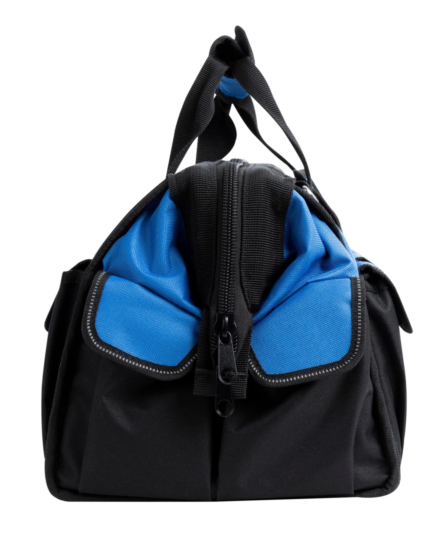 - Heavy-duty tote with extra-padded carry handle and adjustable shoulder strap features many multi-use pockets for storage and organization