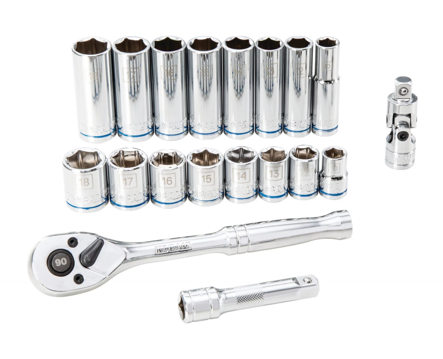 Kobalt Set Chrome (3/8-In) 19-Piece Mechanic Metric Polished