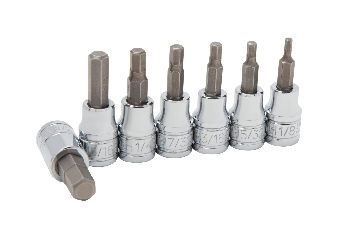 - Contains 7 commonly used SAE hex bit driver sockets including 1/8, 5/32, 3/16, 7/32, 1/4, 5/16 and 3/8-inch