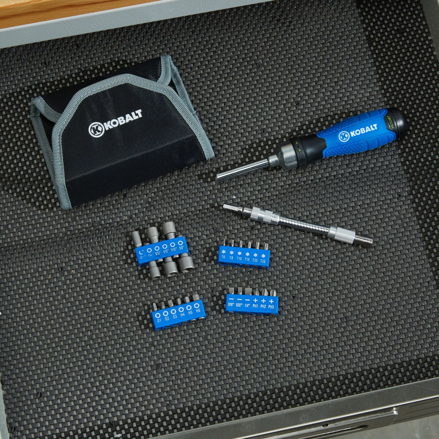 - 18 CRV steel bits and nut drivers for longer life and durability