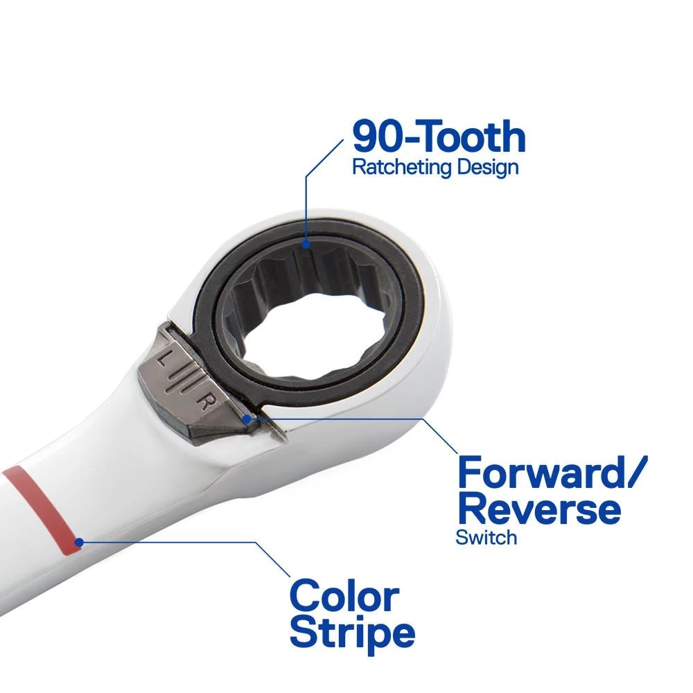 - 90-Tooth ratcheting box end provides 4° of arc swing