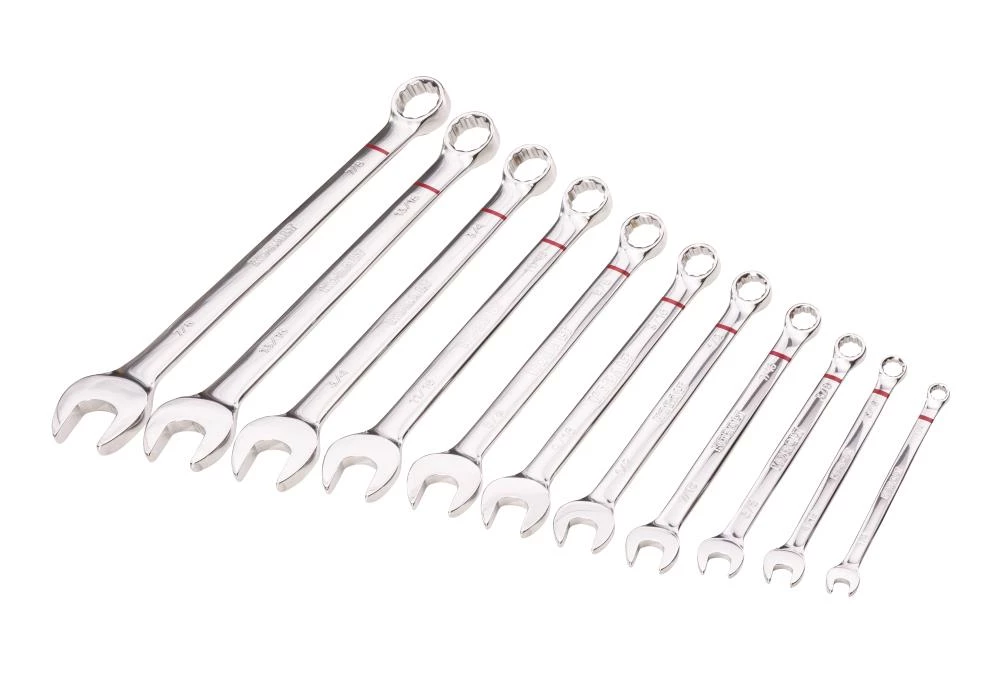 - Wrenches are marked with a hard-stamped size callout and a red color stripe to help quickly identify SAE wrenches